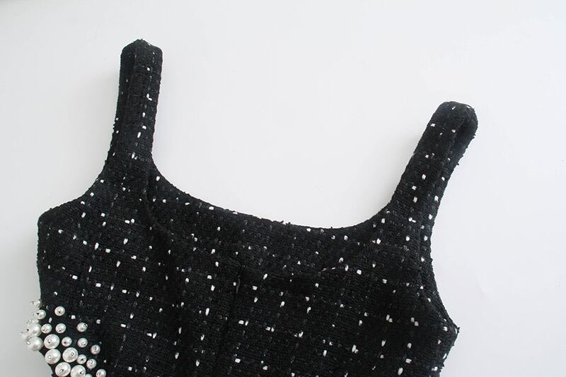 Aachoae 女性チェック柄プリント ツイード ミニドレス セクシーなスパゲッティ ストラップ サイド中空アウト A ライン ドレス パール装飾ドレス Aライン 真珠 aac81573184009 | city&trip