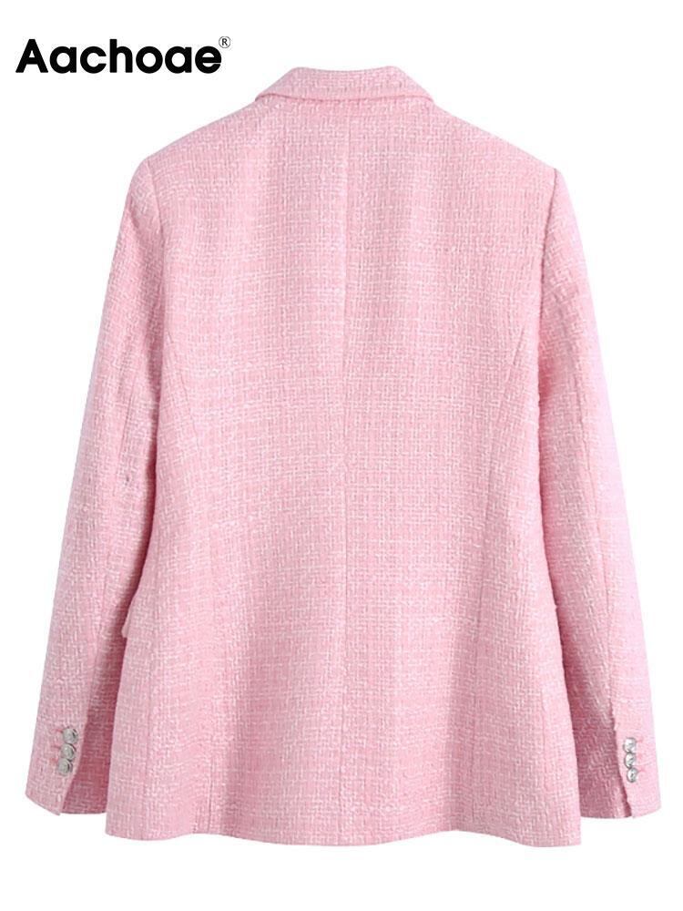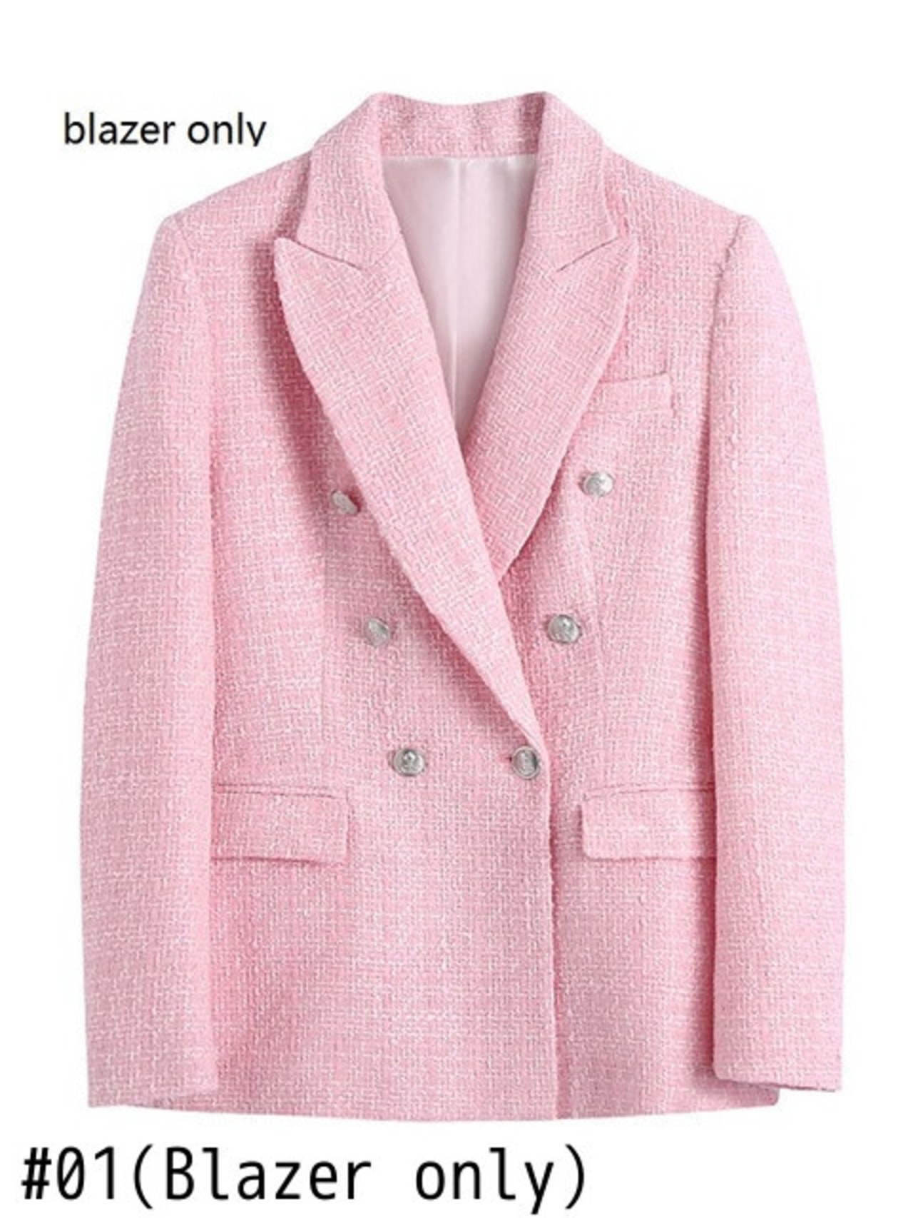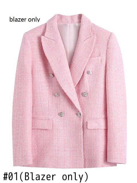 Aachoae シックな女性ピンクツイードスーツブレザーセットダブルブレストブレザーとウエストショーツオフィス衣装セット ブルマー 会社 学校 通勤や通学にも aac16902617405 | city&trip