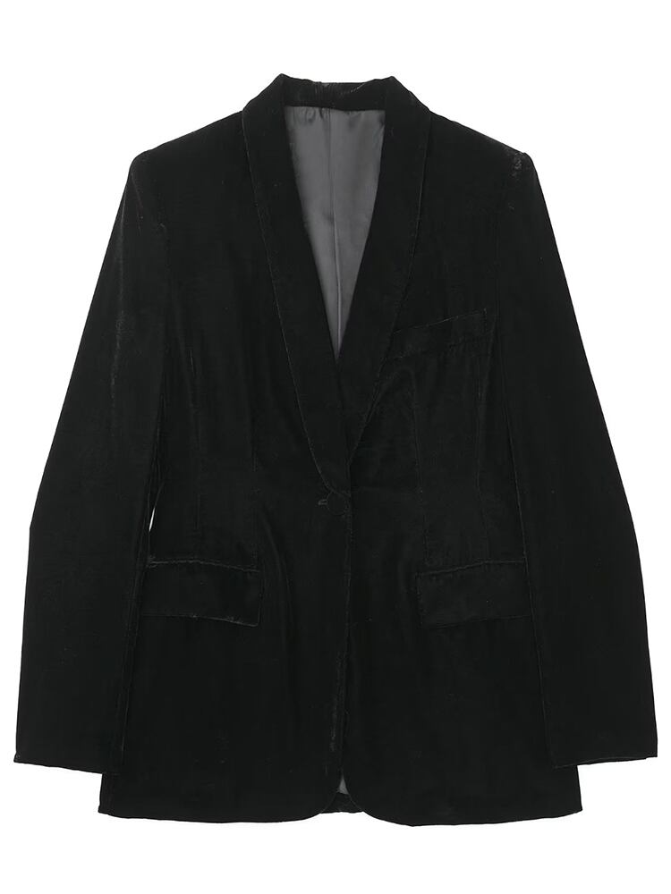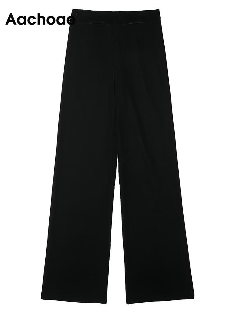 Aachoae レディース 2点セット 無地 ベルベット シングルボタン 長袖 ブレザー スーツ ウエストワイドレッグパンツ ロング ワイドパンツ ソリッドカラー aac94613219641 | city&trip