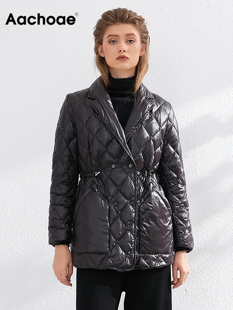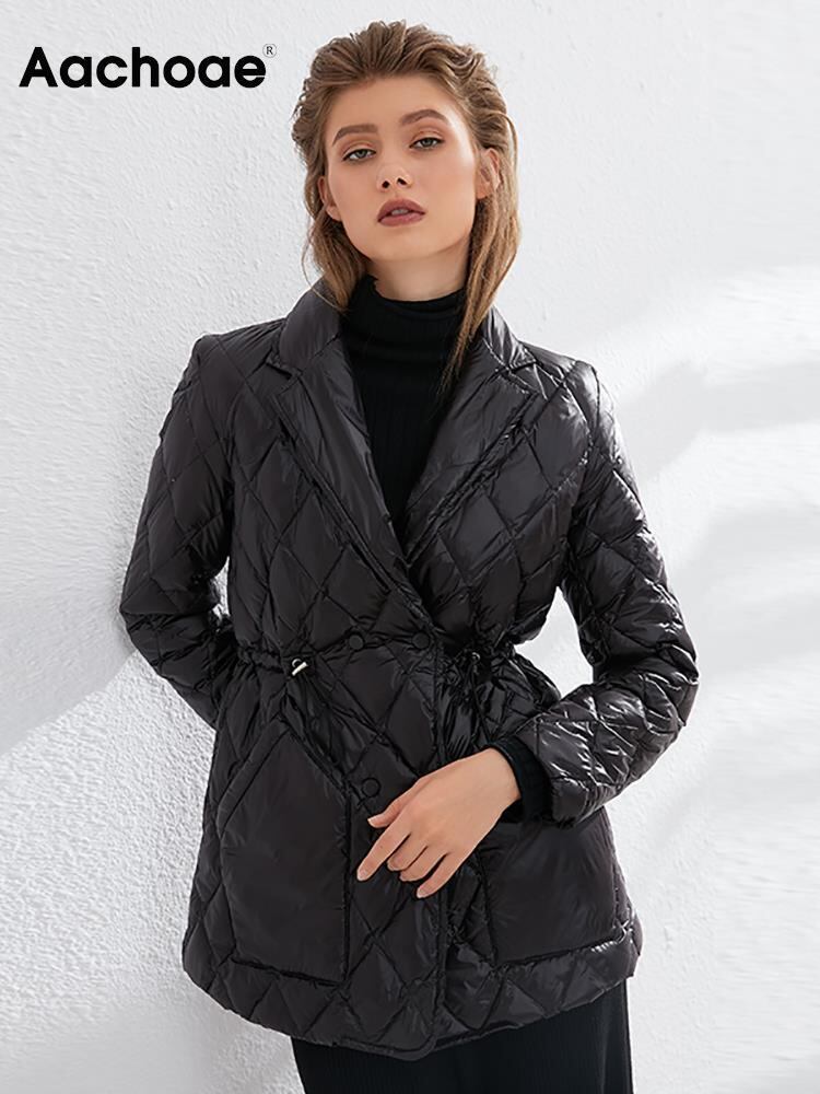 Aachoae 冬秋超軽量ダックダウンジャケット女性長袖無地コートポケットオフィスコート女性の上着 ロング オータム 秋物 ウィンター 冬物 ソリッドカラー 会社 学校 通勤や通学にも aac91450181097 | city&trip
