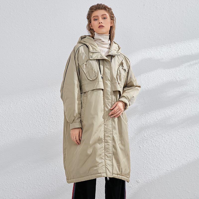 Aachoae ストリートルーズロングフード付きジャケット女性ホワイトダックダウンコートポケット飾る暖かいパーカー冬 ウィンター 冬物 aac75060343080