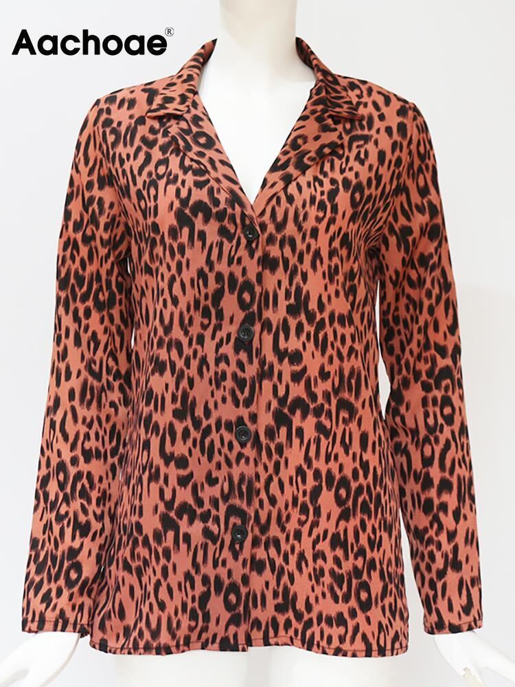 Aachoae 女性ブラウス秋ヒョウブラウス長袖ターンダウン襟女性オフィスシャツルーズトップス Chemisier ロング オータム 秋物 会社 学校 通勤や通学にも aac83320273277 | city&trip