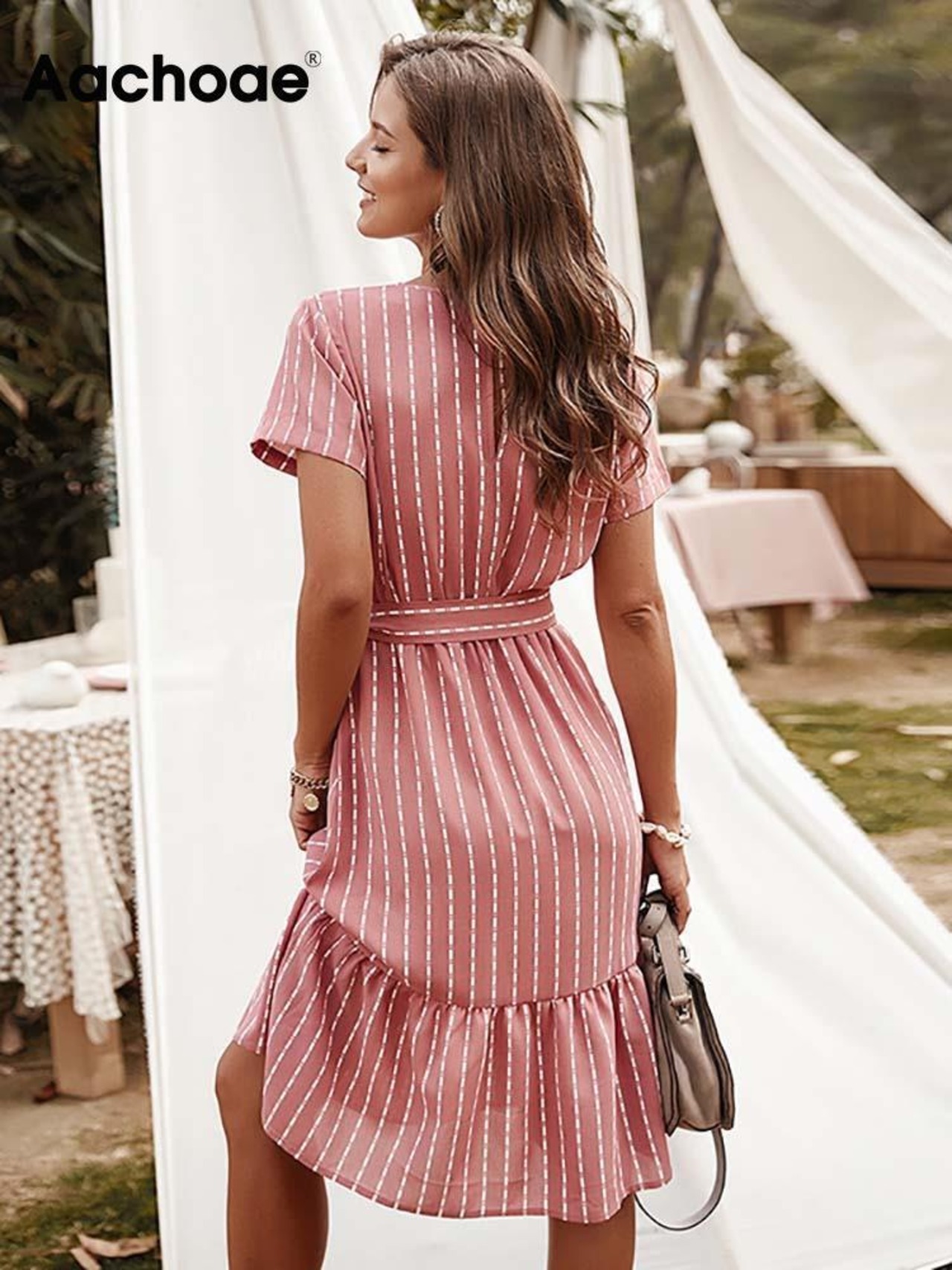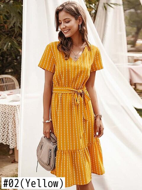 Aachoae V ネックストライプドレス半袖オフィスミディドレスレディ A ラインドレス包帯サンドレス Vestidos ショート ハーフスリーブ Vネック Aライン 会社 学校 通勤や通学にも aac49708017763 | city&trip