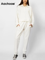 Aachoae 無地 2 点セット女性ターンダウン襟バットウィングスリーブルーズトップスプリーツ全長ペンシルパンツレディースセット ソリッドカラー aac70199682633 | city&trip
