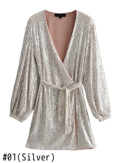 Aachoae 女性のセクシーなディープ V ネックスパンコールパーティードレスランタン長袖シルバーミニドレス包帯クラブホリデードレス Vestidos ロング Vネック 銀 aac47695607933 | city&trip