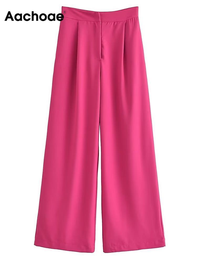 Aachoae 無地 ワイドレッグパンツ レディース ウエストジッパー フライロングパンツ ロングパンツ パンタロン ワイドパンツ ソリッドカラー aac67105197146 | city&trip