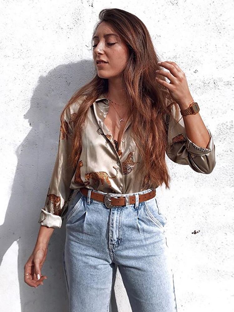 Aachoae レディース ブラウス 長袖 ターンダウンカラー トップス ヒョウ柄 OLスタイル オフィスシャツ ルーズブラウス ロング 会社 学校 通勤や通学にも aac90931313727 | city&trip