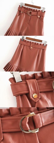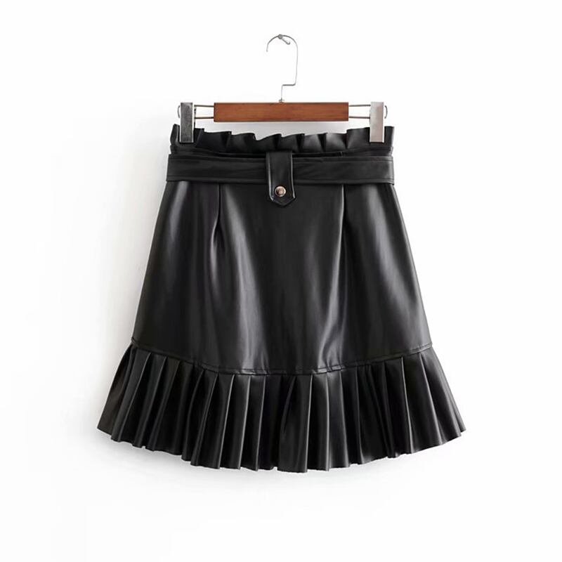 Aachoae 女性黒 PU レザー スカート ベルト ストリート フリル プリーツ ミニ スカート a ライン パーティー クラブ セクシー な ショート スカート ブラック ラッフル ハーネス Aライン aac44295138336 | city&trip
