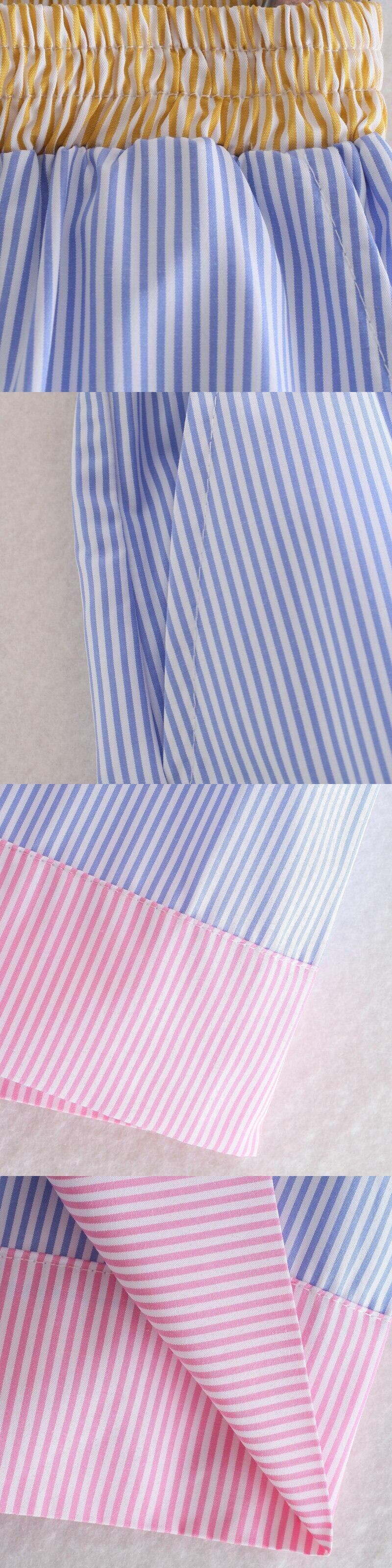Aachoae レディース セット ストライプ プリント 2 点セット パッチワーク バットウィング スリーブ シャツ ウエストゴム ショーツ 衣装 エラスティック 伸縮 ブルマー aac62762215981 | city&trip