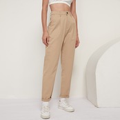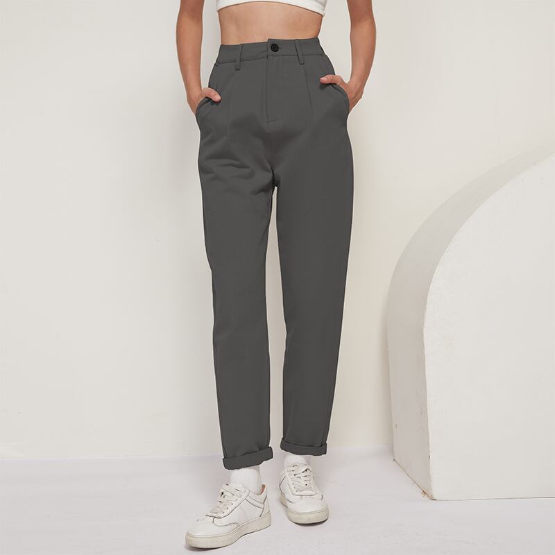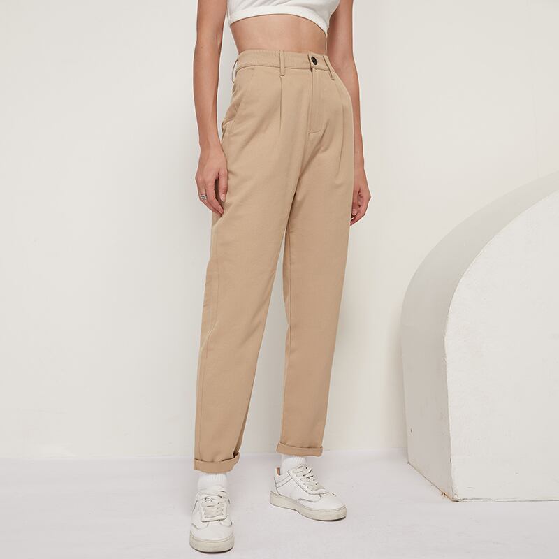 Aachoae 女性綿 100% 無地ロングパンツオフィスレディズボンプリーツロング丈ペンシルパンツパンタロン コットン ソリッドカラー 会社 学校 通勤や通学にも aac54708301471