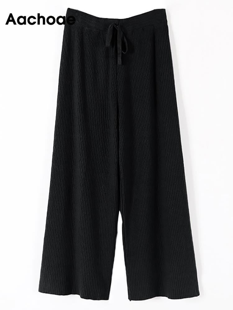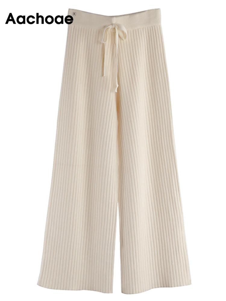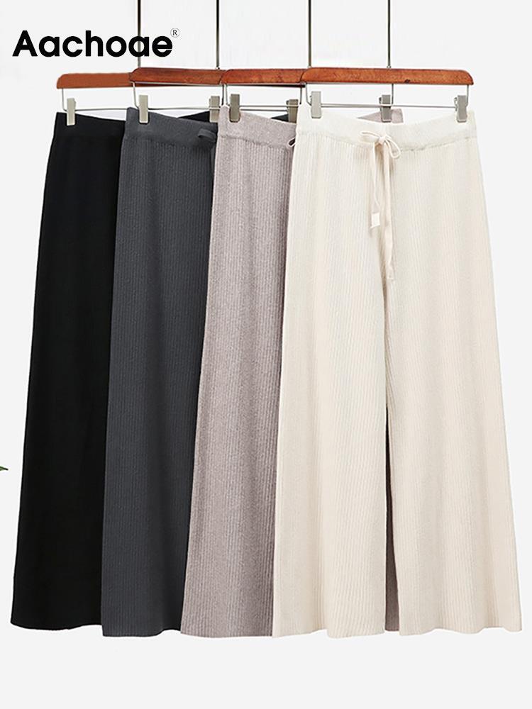 Aachoae 女性秋冬ニットワイドレッグパンツ無地ルーズ長ズボン弾性ウエスト巾着パンツ ロング エラスティック 伸縮 オータム 秋物 ウィンター 冬物 ワイドパンツ ソリッドカラー aac55153909369 | city&trip