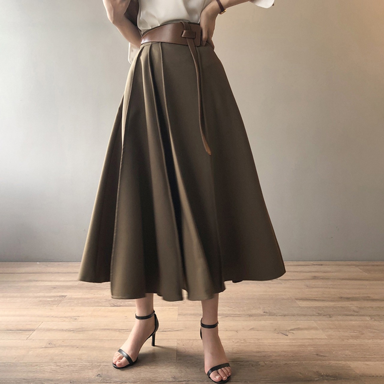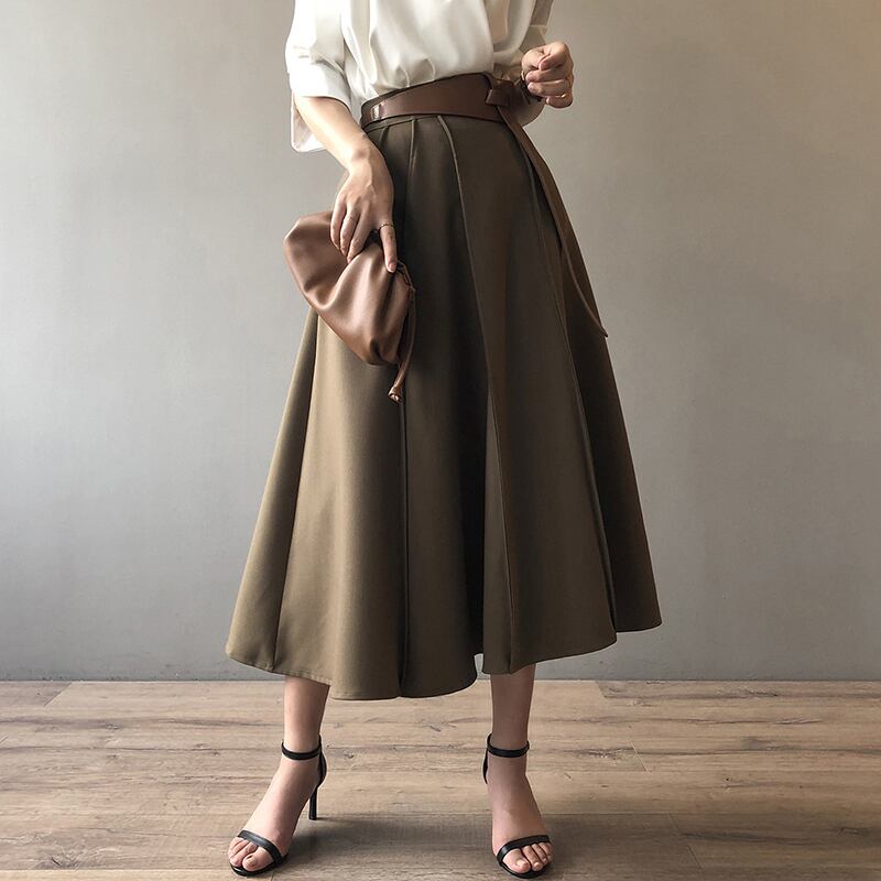 Aachoae 秋の女性 Wasit A ラインミディスカートオフィス無地 Skrit ルーズスカート段 Faldas オータム 秋物 Aライン ソリッドカラー 会社 学校 通勤や通学にも aac55121139491 | city&trip