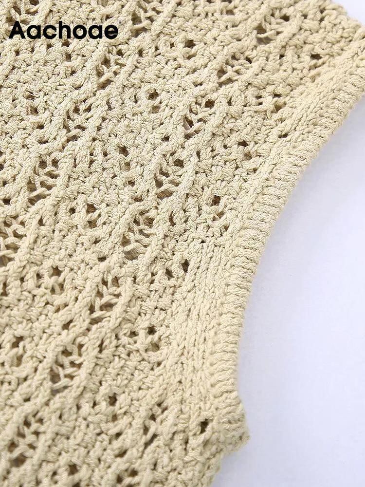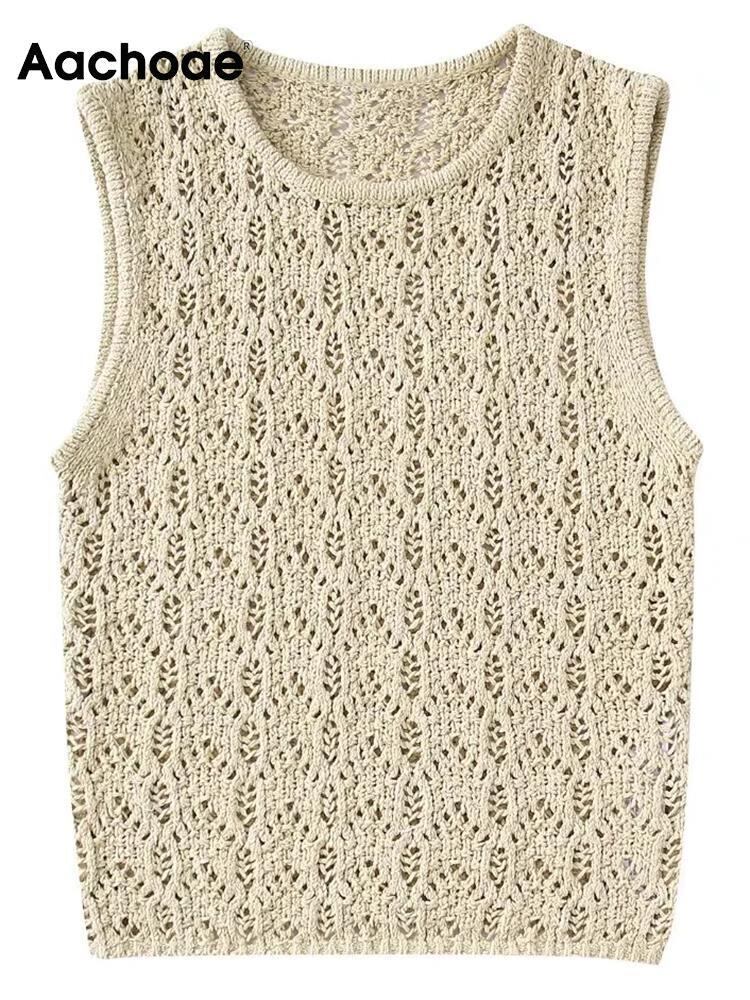 Aachoae 女性無地ニットトップス O ネック Sleevess タンクトップ夏スリム中空アウトタンクトップ サマー 夏物 Oネック ソリッドカラー aac82630718351 | city&trip