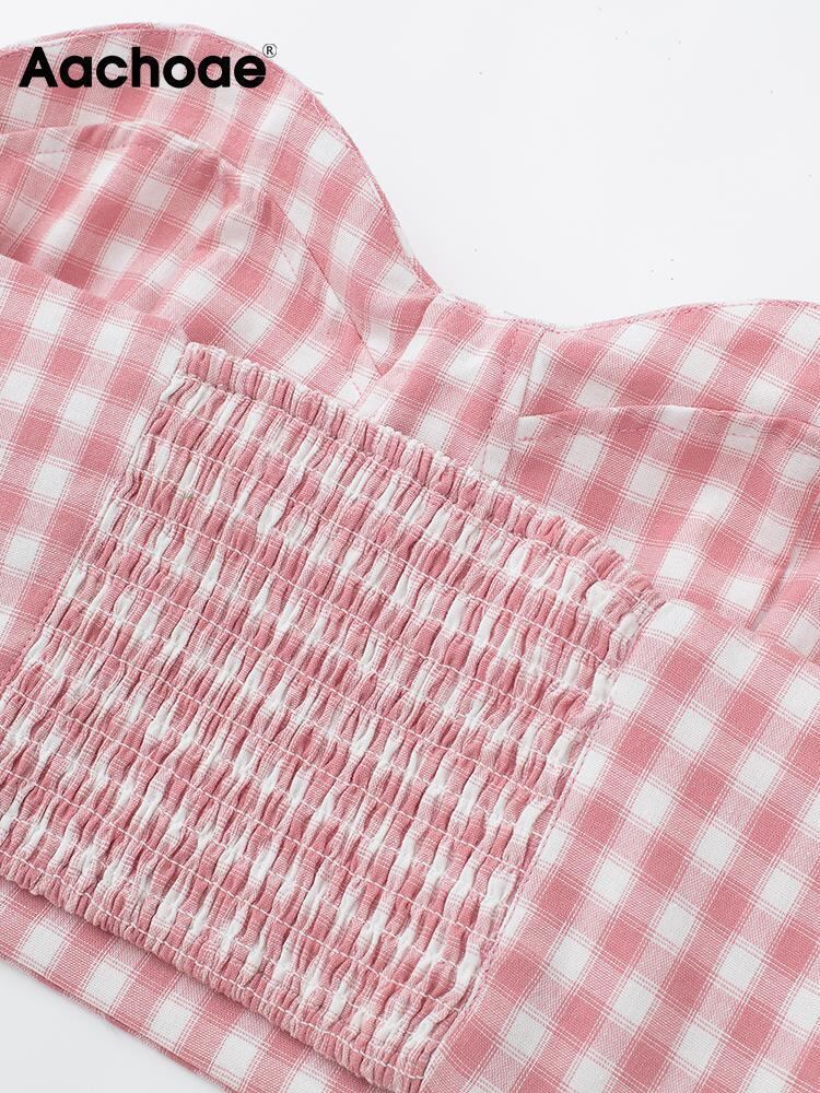 Aachoae 女性チェック柄プリントキャミソールトップスセクシーなストラップレスバックレスクロップドトップス夏シックなボディコントップ サマー 夏物 aac92798826906 | city&trip