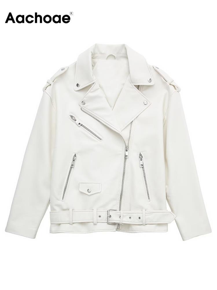 Aachoae 女性ストリート無地ジャケットコート PU フェイクレザー長袖ジッパーフライコートシックなアウターウェアトップ ロング ファー ソリッドカラー aac50775829845 | city&trip