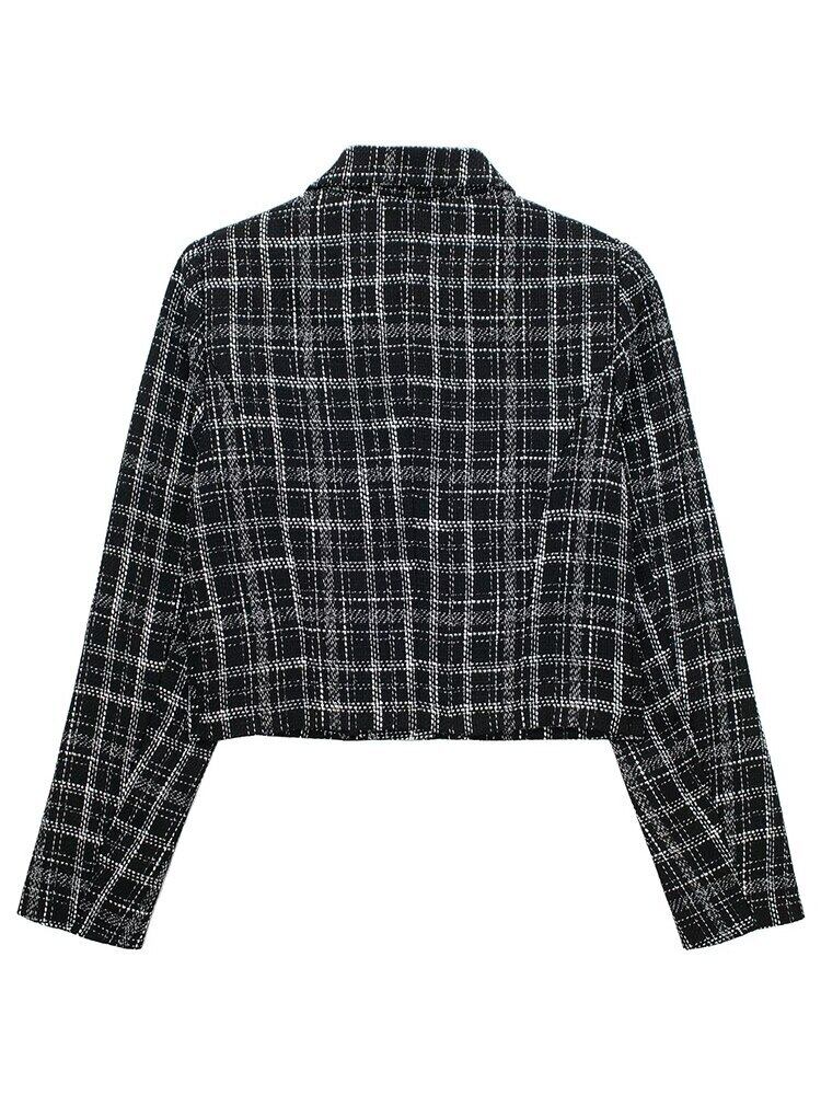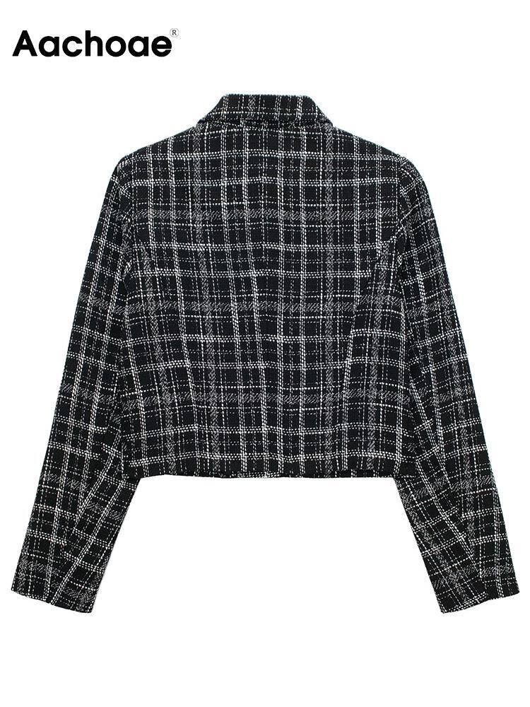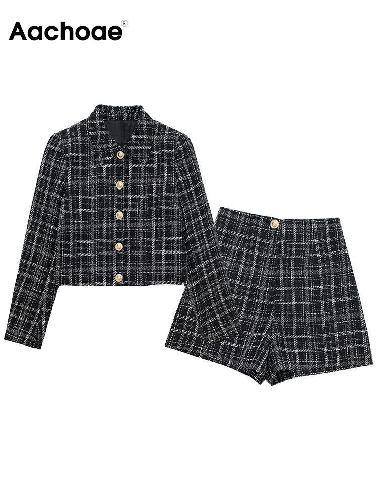 Aachoae レディース 2点セット チェック柄 プリント ターンダウンカラー 長袖 シングルブレスト ジャケット コート ウエストショーツ付き ロング ブルマー aac33607223032 | city&trip