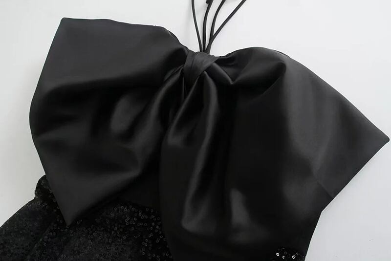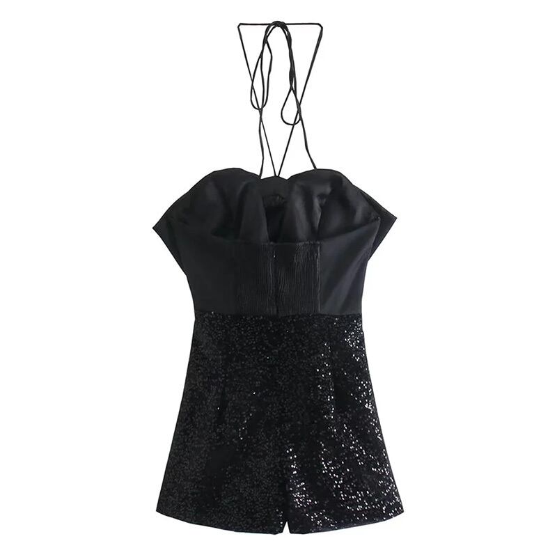 Aachoae 女性のセクシーな黒のシャイニースパンコール遊び着蝶ネクタイホルターノースリーブ遊び着背中の開いたパーティークラブウェアロンパース ブラック リボン aac17976229017 | city&trip