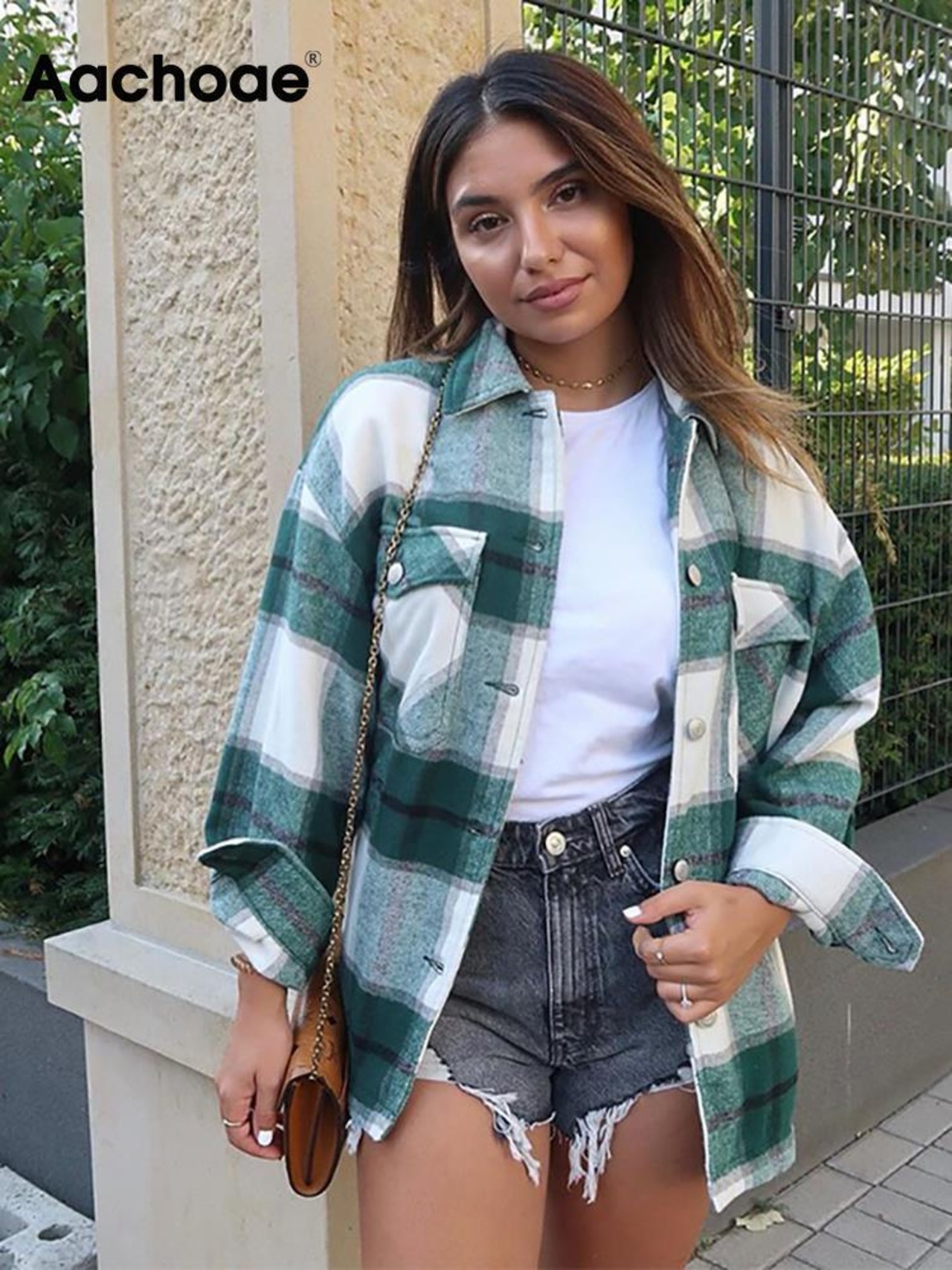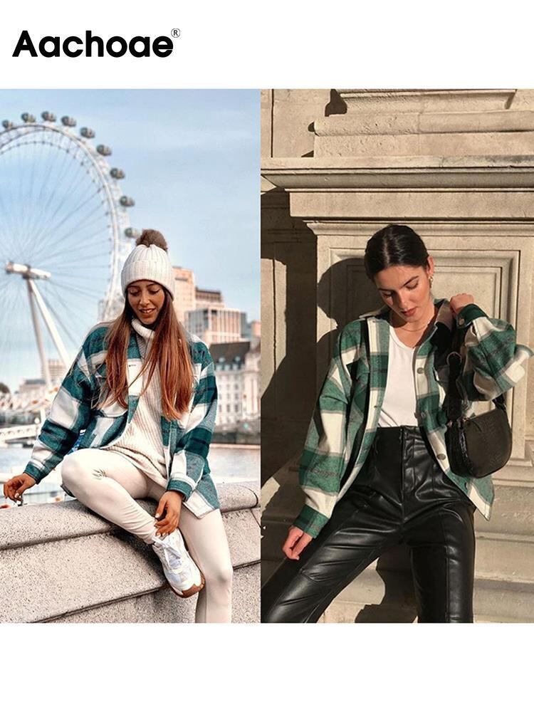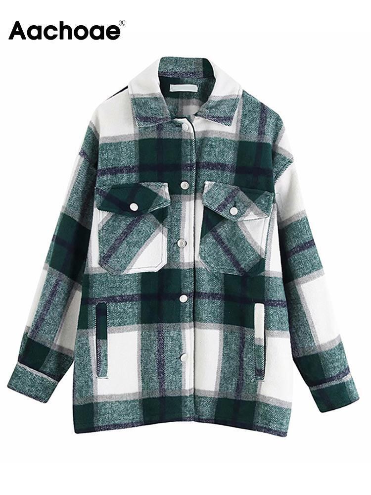 Aachoae レディース チェック柄ジャケット コート ターンダウンカラー ウールブレンドコート ロングスリーブ 春ジャケット 長袖 スプリング 春物 aac58123650466 | city&trip