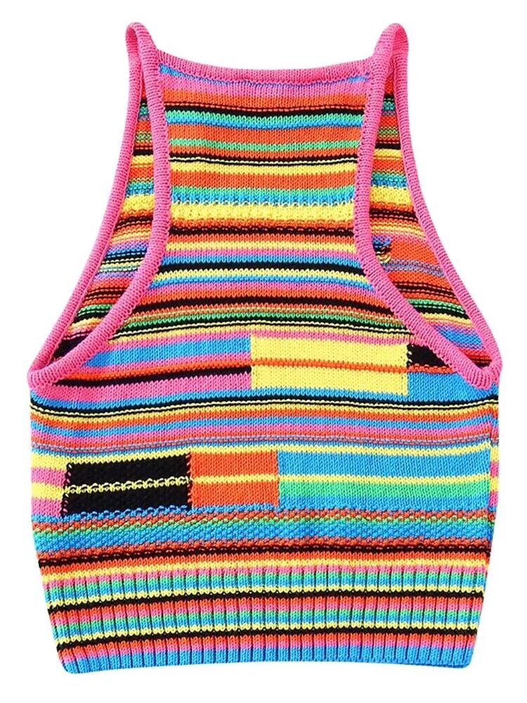 Aachoae レディース シックなパッチワーク ストライプ タンクトップ O ネック 袖なし ニット タンクトップ サマー 夏物 Oネック スリム aac10545093188 | city&trip