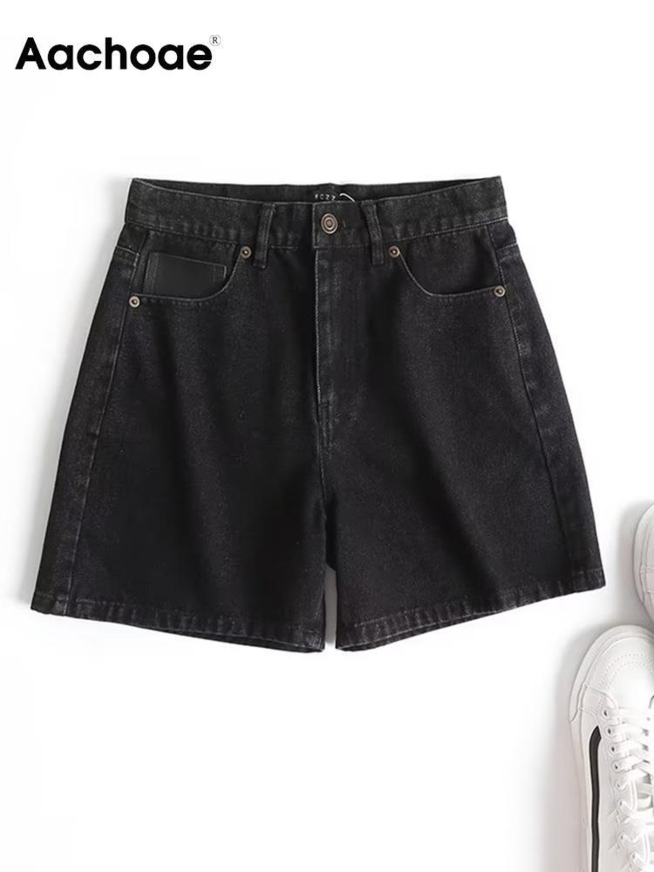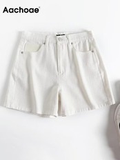 Aachoae レディース ベーシック 無地 デニムショーツ ウエストジッパー フライパンツ サマーパンツ ポケット付き 夏物 ブルマー ソリッドカラー aac33712397494 | city&trip