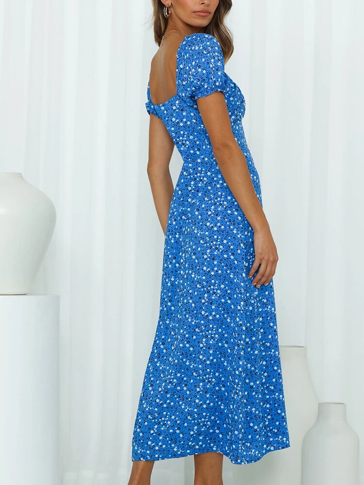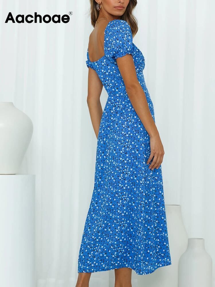 Aachoae A ライン ロング ドレス夏フローラル プリント サイド スプリット ドレス蝶半袖スリム ドレス Vestidos ショート ハーフスリーブ サマー 夏物 花柄 Aライン | city&trip