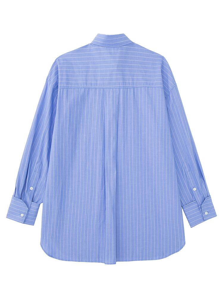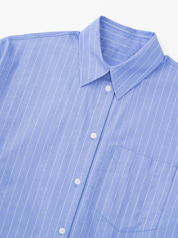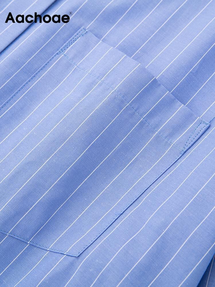 Aachoae レディース オフィス ストライプ プリント ブラウス シャツ ターンダウン カラー ロングスリーブ シャツ ポケット付き ルーズ トップス 長袖 会社 学校 通勤や通学にも | city&trip