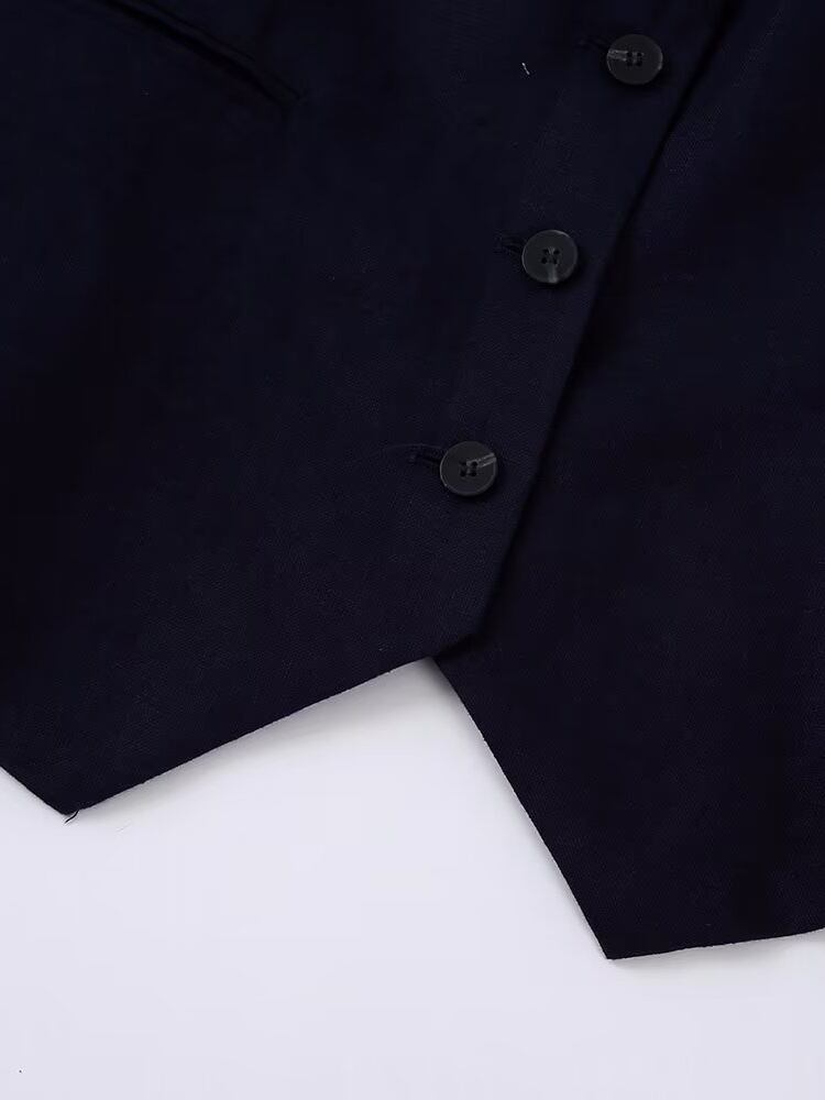 Aachoae 2 ピース セット無地 V ネック シングル ブレスト ウエスト コート ウエスト ジッパー フライ ワイドレッグ パンツ Vネック ワイドパンツ ソリッドカラー | city&trip