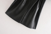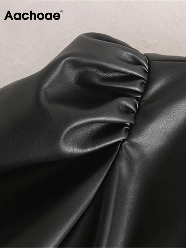 Aachoae シック黒色 PU レザーミニドレスパフ半袖スタイリッシュパーティードレス O ネックプリーツドレス Vestidos ショート ブラック ハーフスリーブ Oネック | city&trip