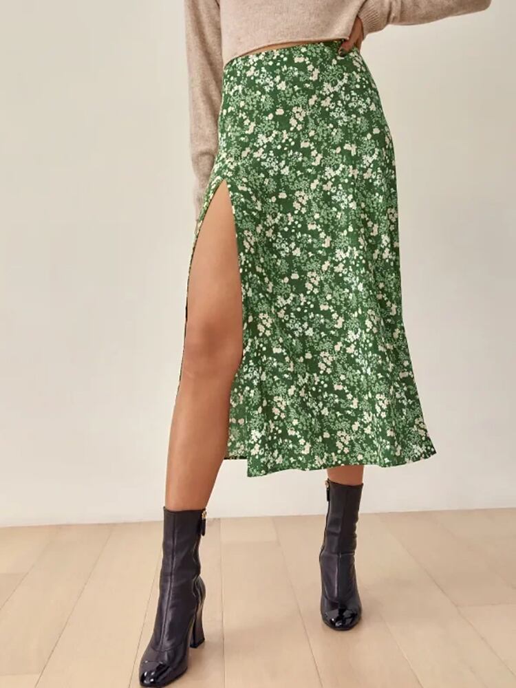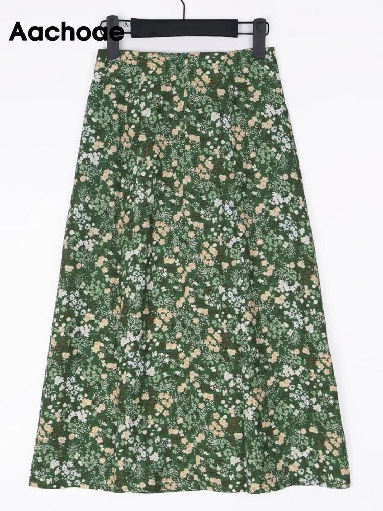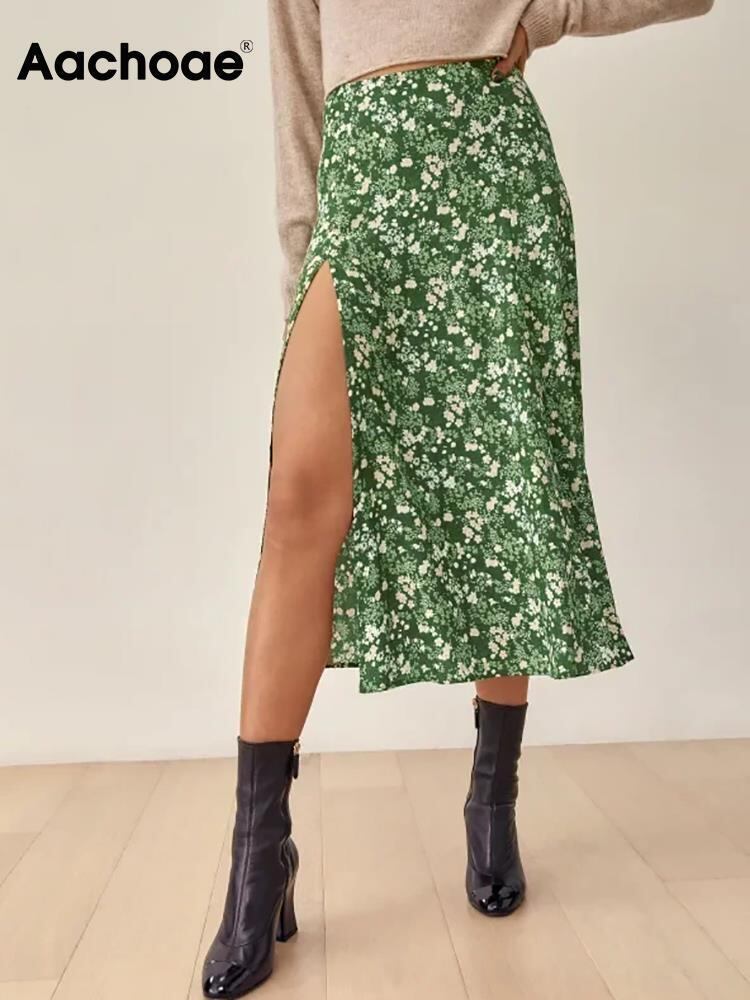 Aachoae 夏花プリント甘いスカート A ラインスプリットビーチスカートウエストバックジッパー自由奔放生きるミディスカート 大人ガーリー スウィート キュート カジュアル サマー 夏物 花柄 Aライン | city&trip