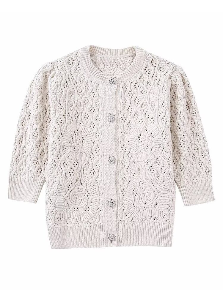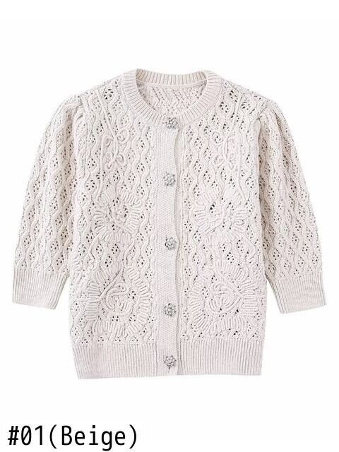 Aachoae 無地カーディガンセーターベーシック O ネックハーフスリーブニットセーターシングルブレストコート 半袖 Oネック ソリッドカラー