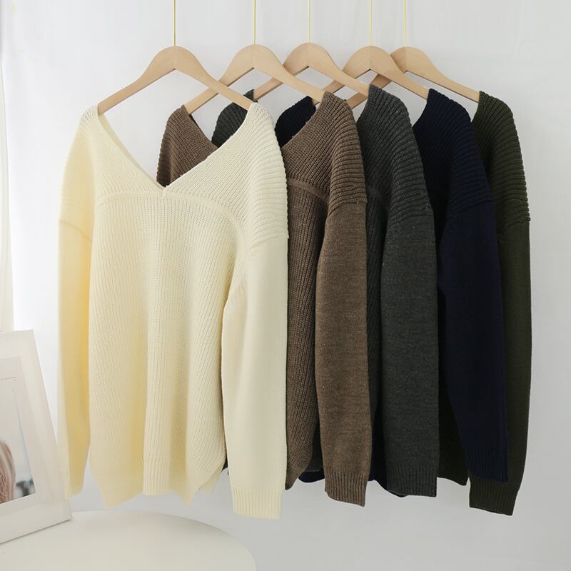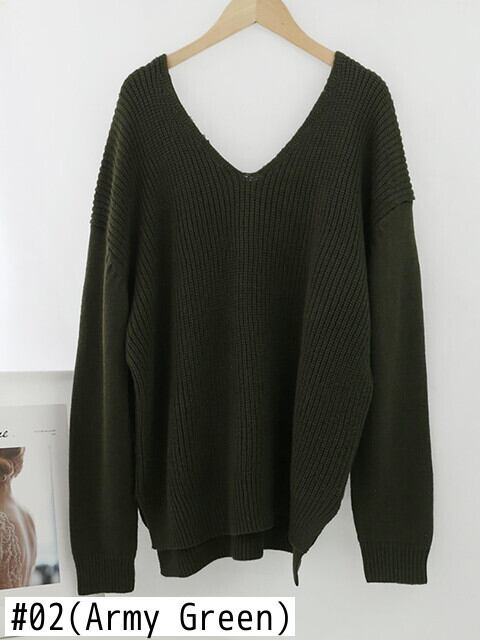 Aachoae ソリッド V ネックプルオーバーセータールーズバットウィング長袖ニットジャンパー不規則裾セーター ロング Vネック ソリッドカラー