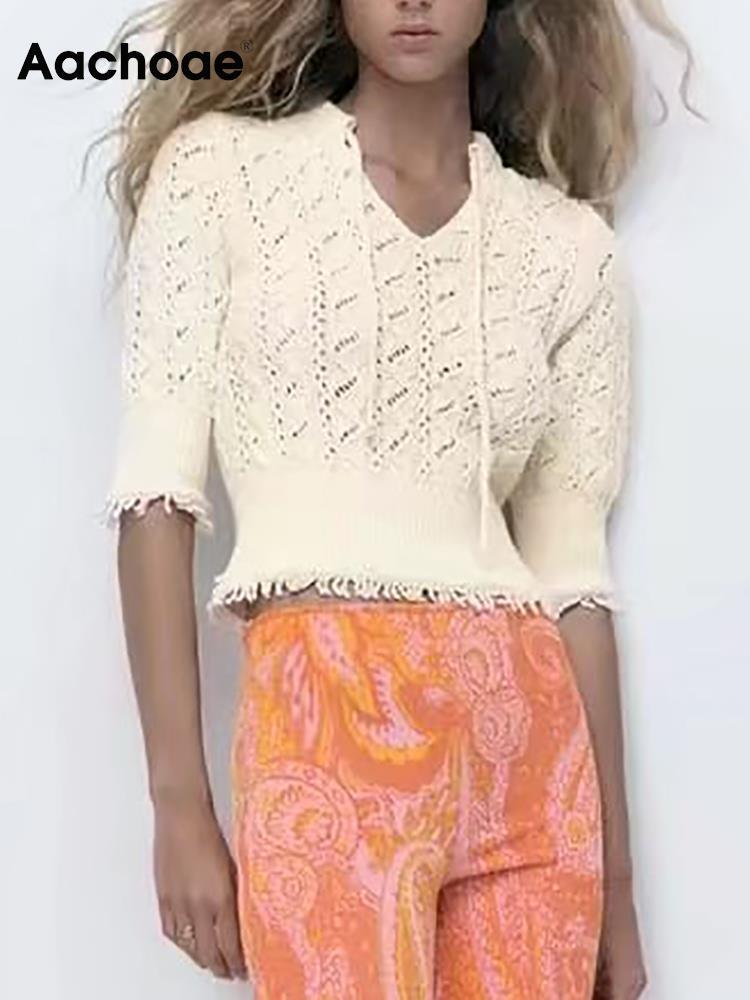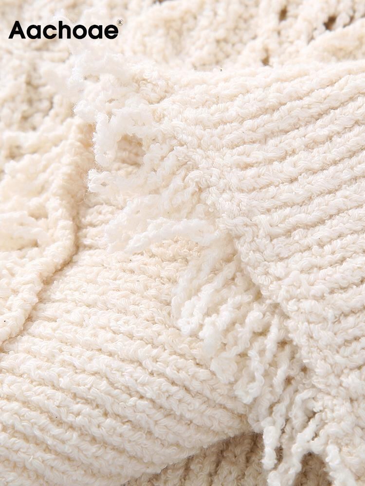 Aachoae 蝶襟セーターソリッドカラーニットプルオーバートップススリムテルジャンパートップス