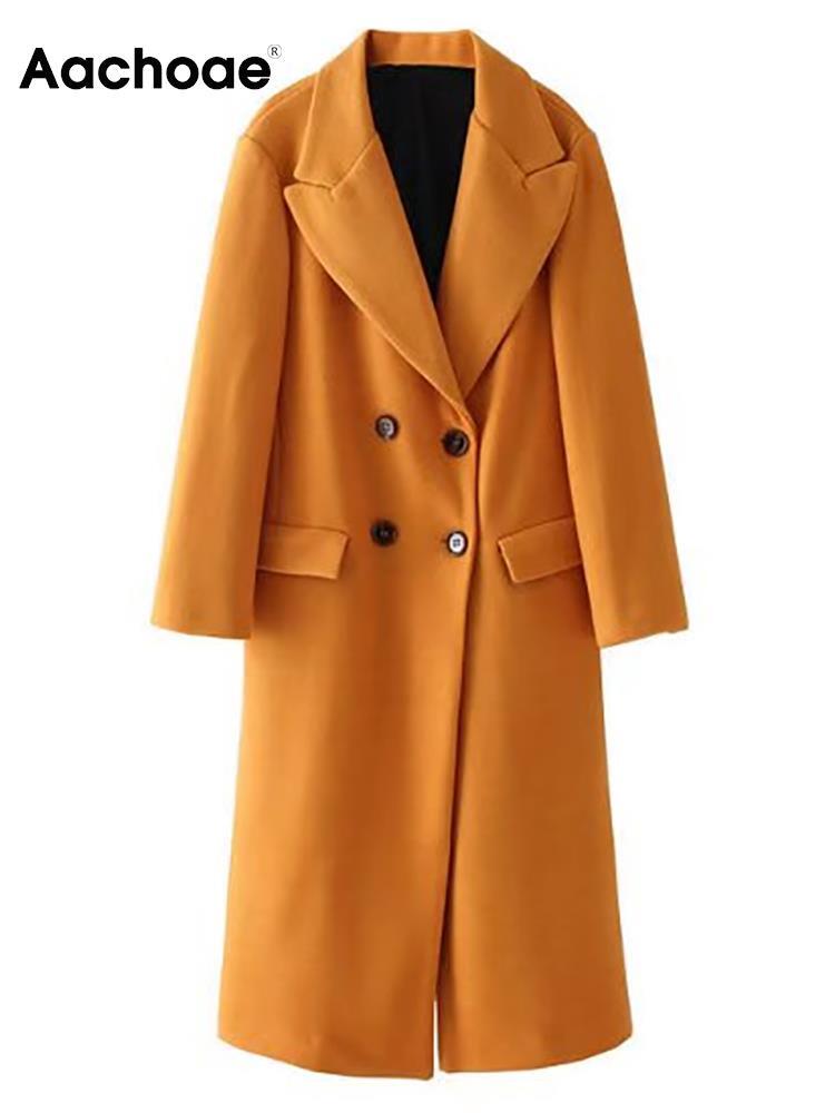 Aachoae レディース 無地 ウールコート ダブルブレスト 長袖 オーバーコート 冬用ロングコート ウィンター 冬物 ソリッドカラー