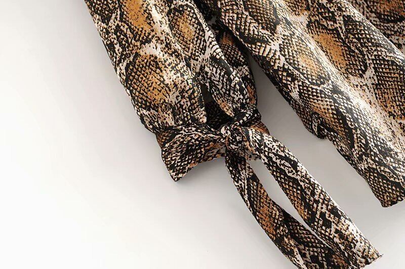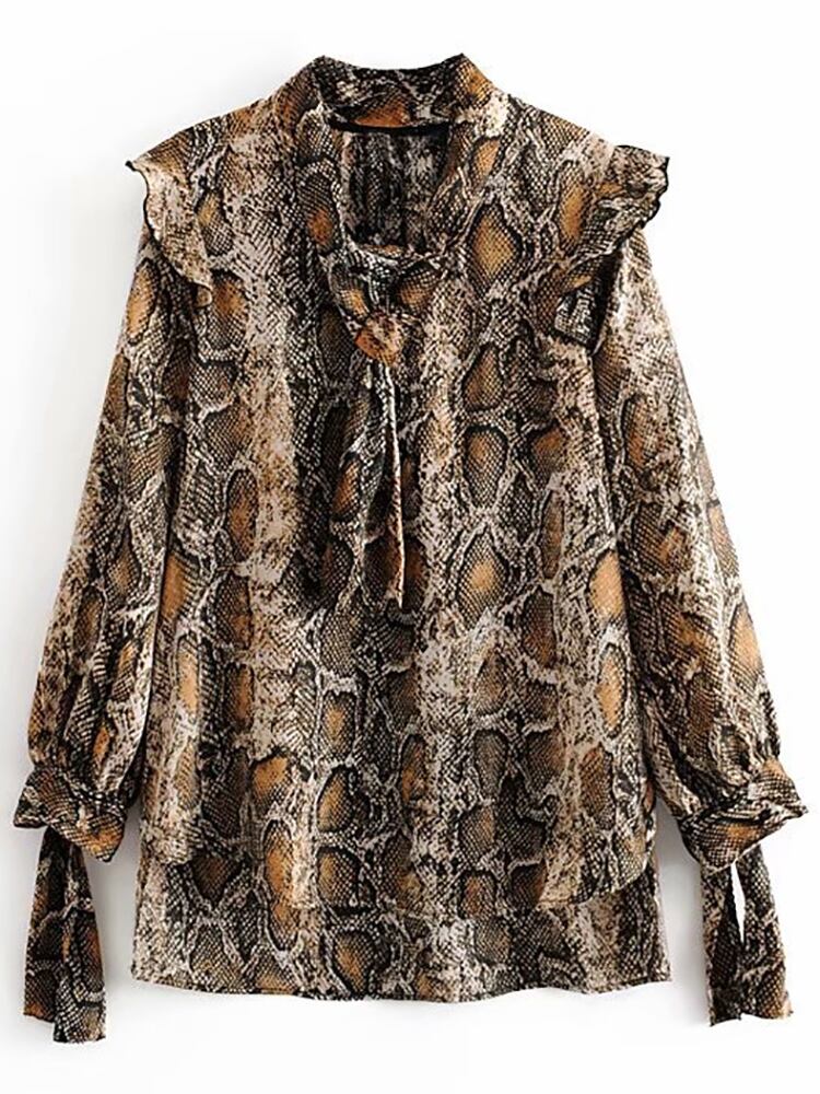 Aachoae シックスタイリッシュフリルスネークプリントブラウス蝶ネクタイネックストリートシャツ長袖オフィスブラウストップス ロング リボン ラッフル 会社 学校 通勤や通学にも | city&trip