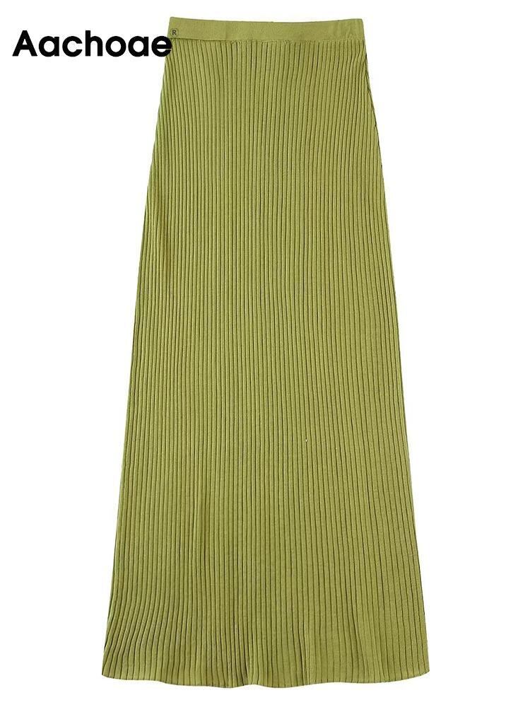 Aachoae ソリッドカラーミディスカートウエストニットスカート夏スリム A ラインスカート Vestido サマー 夏物 Aライン