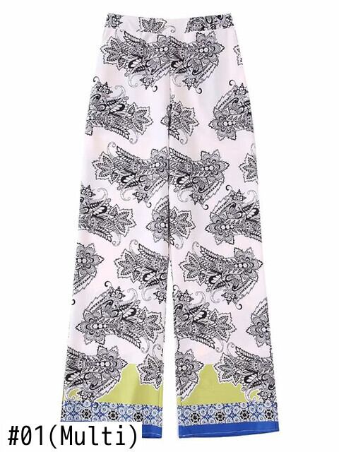 Aachoae 花柄プリントワイドレッグパンツウエストロングパンツシック弾性ウエストロングパンツ エラスティック 伸縮 ワイドパンツ