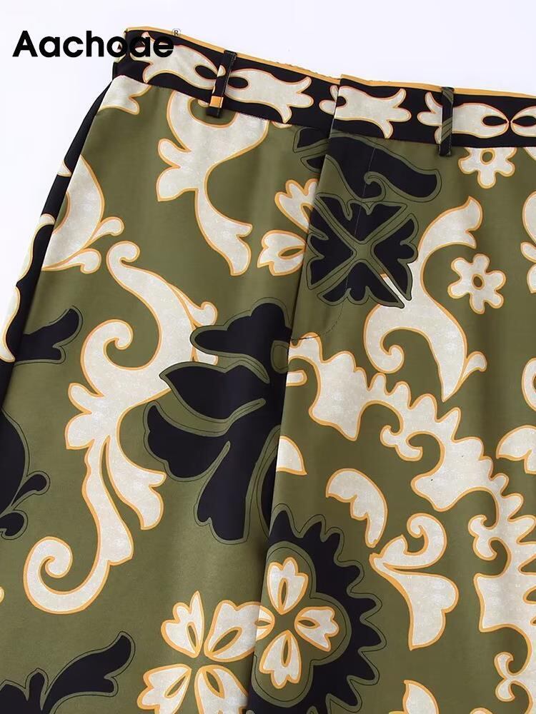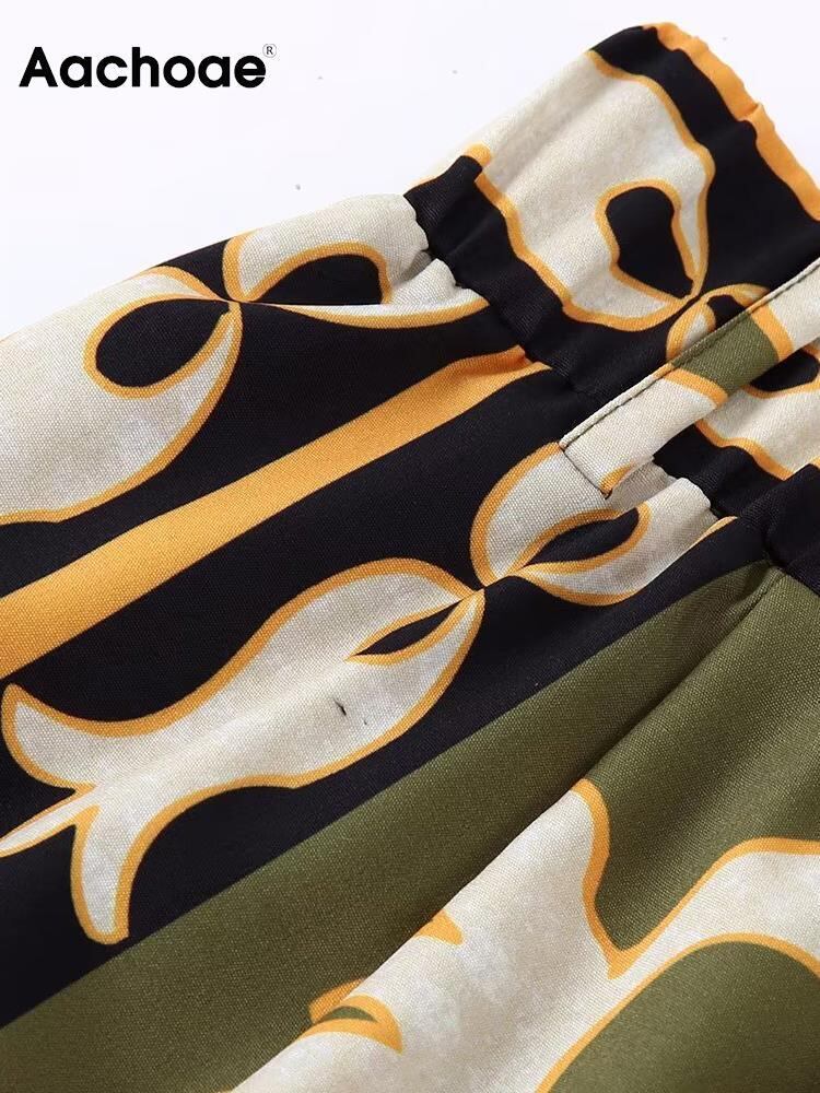 Aachoae 花柄プリントワイドレッグパンツウエストジッパーフライロングパンツパンツパンタロン ワイドパンツ