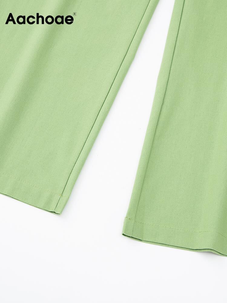 Aachoae 無地弾性ワーシト長ズボンウエストプリーツ長ズボングリーンカラー長ズボン ロング エラスティック 伸縮 ソリッドカラー