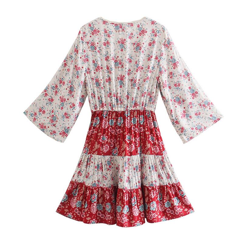 Aachoae 夏自由奔放生きる O ネックミニドレスシック A ラインフレアスリーブビーチドレス蝶ネクタイ弾性ウエストホリデードレス リボン エラスティック 伸縮 サマー 夏物 Oネック Aライン | city&trip
