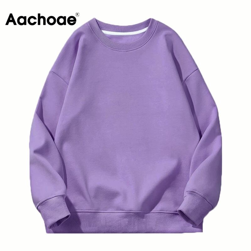 Aachoae O ネックスウェット無地秋冬フリースプルオーバーパーカーバットウィング長袖スポーツトップス ロング シャツ オータム 秋物 ウィンター 冬物 Oネック ソリッドカラー | city&trip