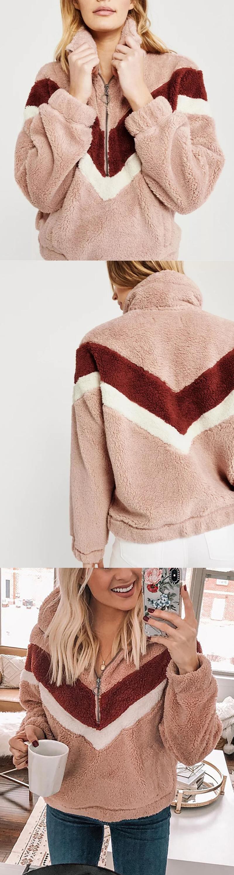 Aachoae 暖かいパーカー秋冬パッチワークジッパー長袖フリースプルオーバールーズテディスウェット Sudaderas ロング シャツ オータム 秋物 ウィンター 冬物