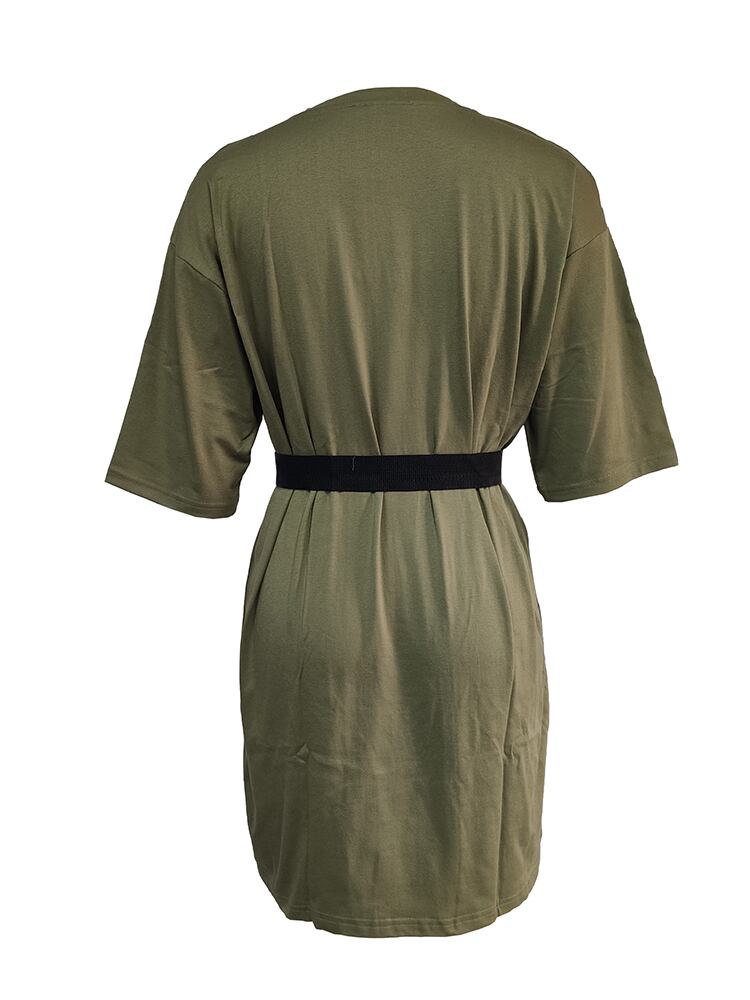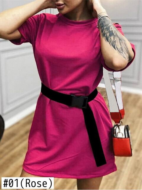 Aachoae ソリッド Tシャツドレスベーシック O ネック半袖ミニドレス夏ルーズドレスベルト付き ショート ハーフスリーブ サマー 夏物 ハーネス Oネック ソリッドカラー | city&trip
