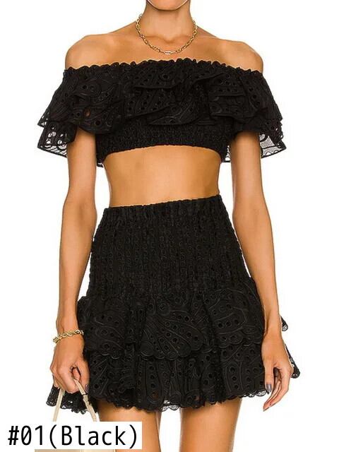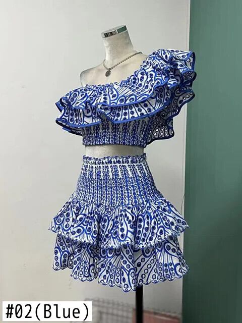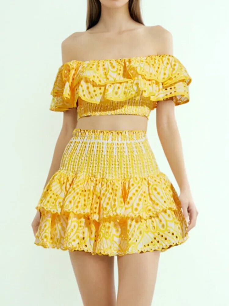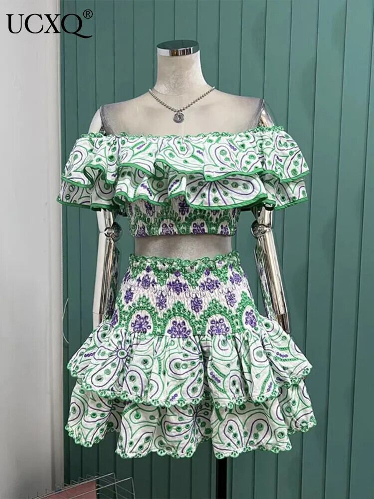 UCXQ er essbarer Baum-Pilzrand、kurzes trägerloses Top、hohe Taille、Kuchenrock、sexy Zweiteiler-Set für Damen、2024、Frühling und Sommer、A8502 | city&trip
