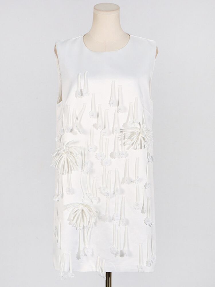 Ucxq モード Korte Jurk Hotsweet O Hals パッチワーク Kwastje Bloem Witte Mouwloze Jurken Voor Vrouwen 2024 Nieuwe Lente Zomer A9074 大人ガーリー スウィート キュート カジュアル | city&trip