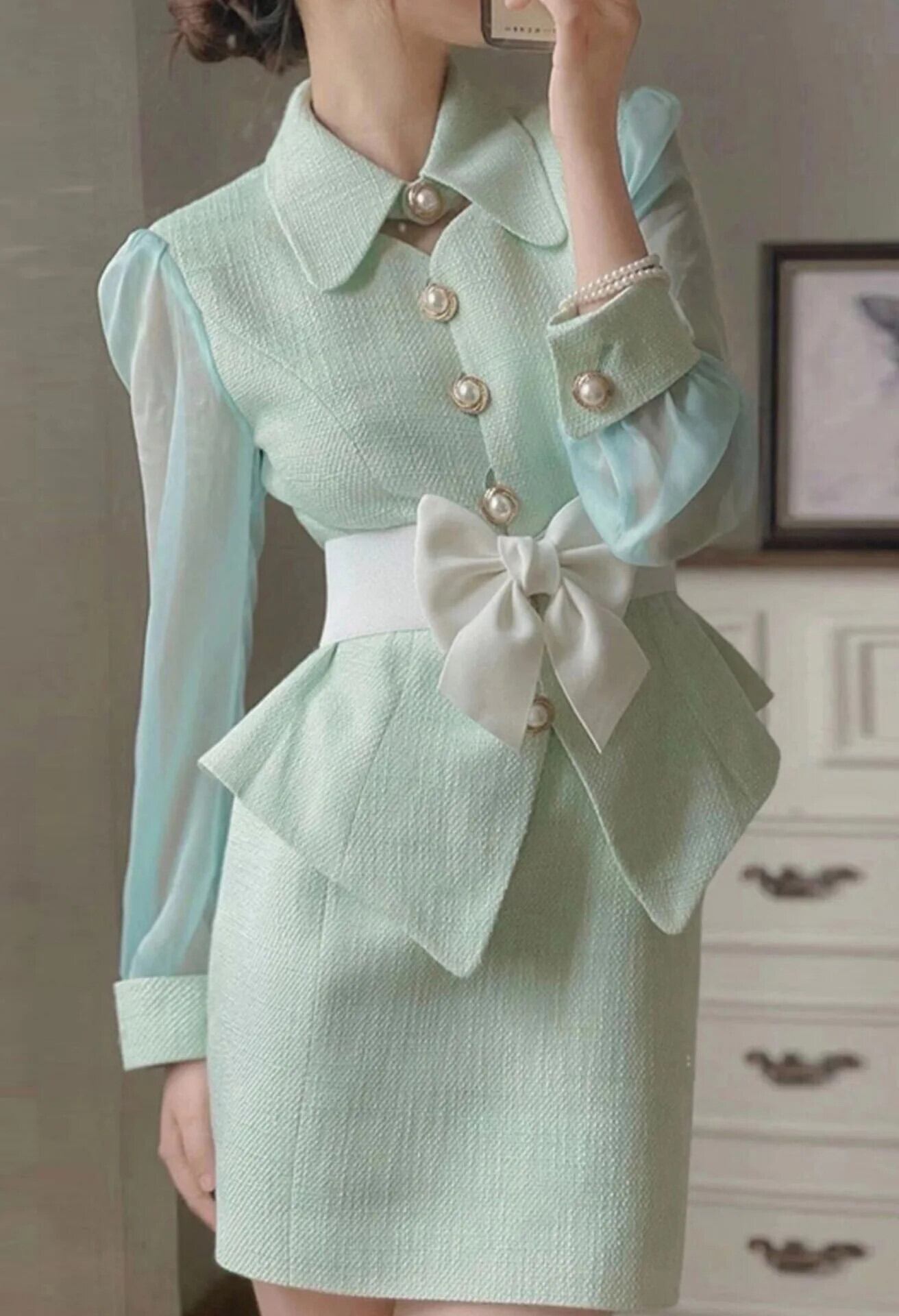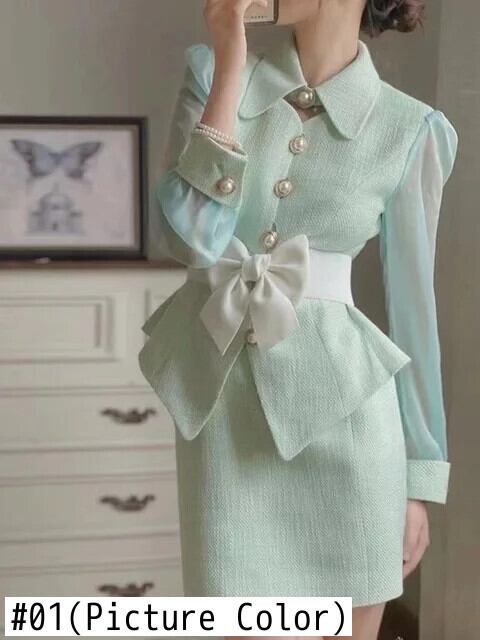 UCXQ モード Straße セットおよびメッシュ Verstärktes Langarm Bogen Taille Top Rock Zwei Stück Set Für Frauen 2024 Neue frühling Herbst 811 | city&trip