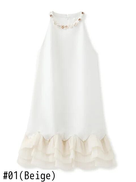 Ucxq kurzes Kleid sweet Perlen ärmellose Sppleißen Rüschen Rand Mode A-Linie Kleider Frauen 2024 Frühling Sommer nur s 大人ガーリー スウィート キュート カジュアル | city&trip