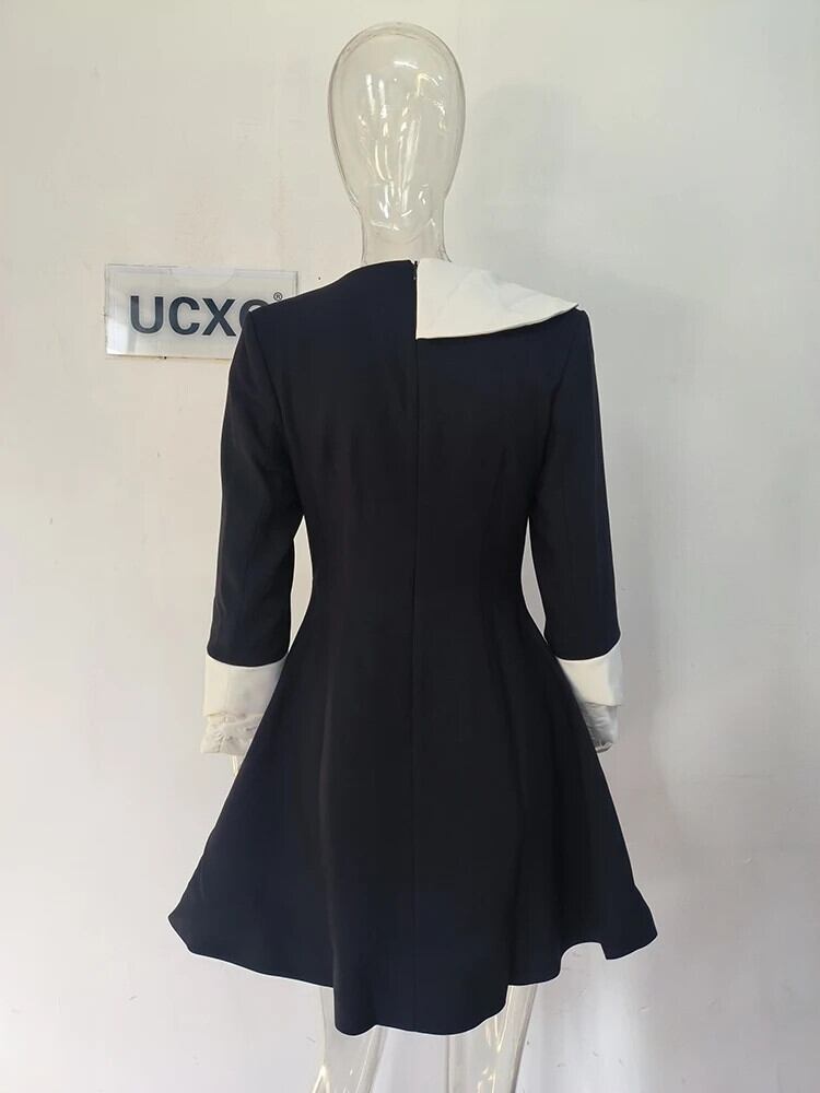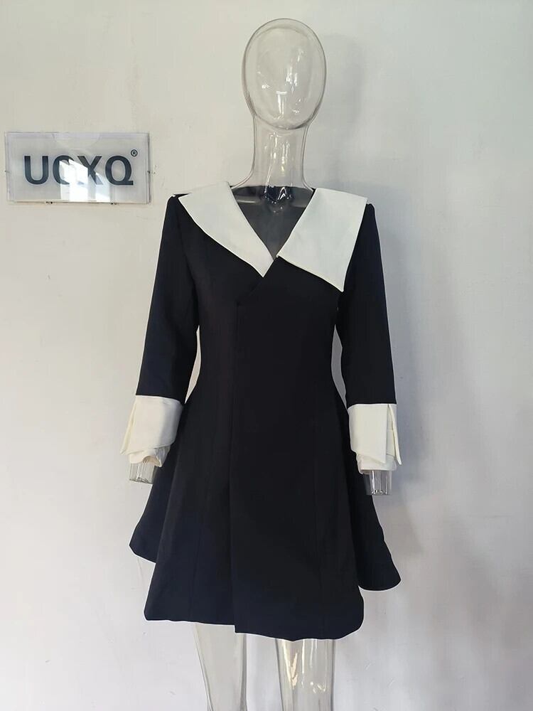 Ucxq französisch stilvolle V-Ausschnitt パッチワーク クライダー フラウエン エレガンテ タイユ ゲシュロッセン A-Linie Vestido 203 Frühling neue Flut 10 ab5583 エレガント | city&trip