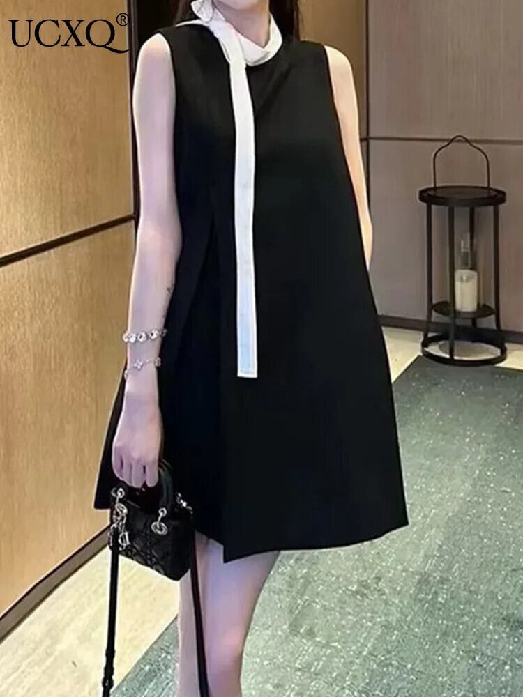 Ucxq schwarzes Kleid s sweet Bogen o Hals kontrastierende Farben ärmelloseelegante kurze Kleider Frauen Frühling Sommer 3 a9355 エレガント | city&trip