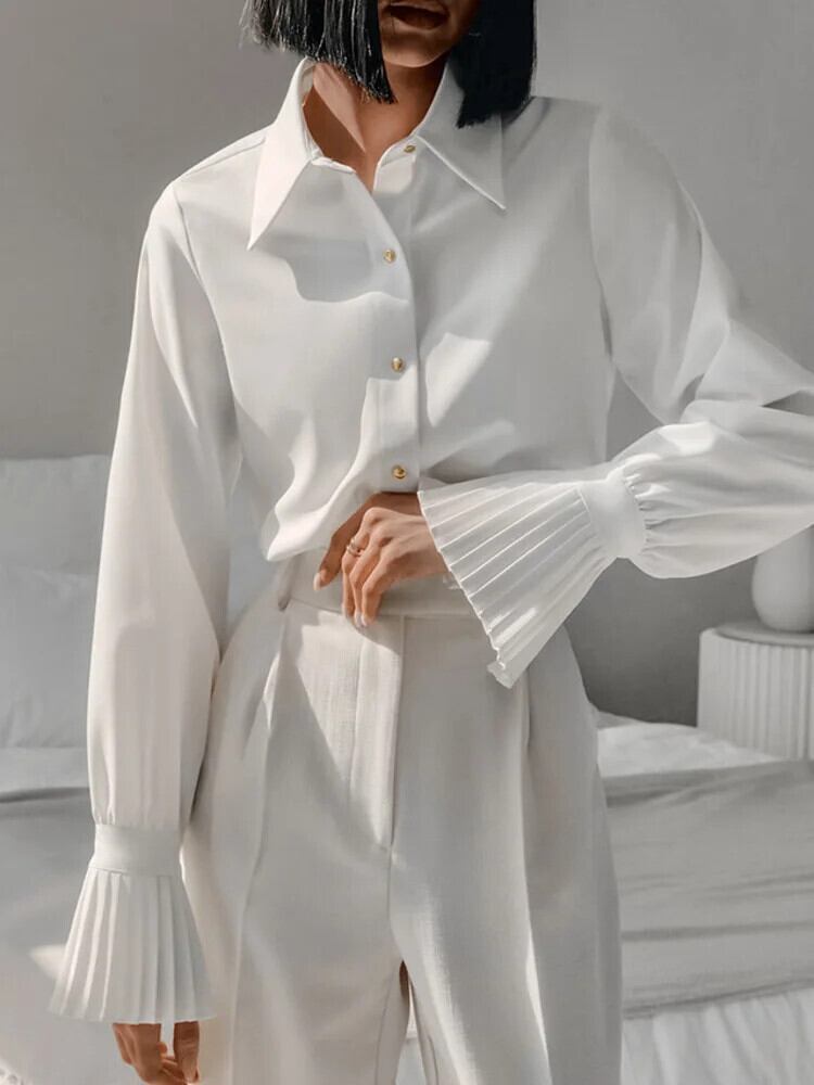 UCXQ es Freizeithemd im europäischen Stil、ausgestellte Ärmel、Falten、Spleißen、alle Spiel、Bürodame、Bluse、Damen、2024、Frühling und Herbst 1087 | city&trip