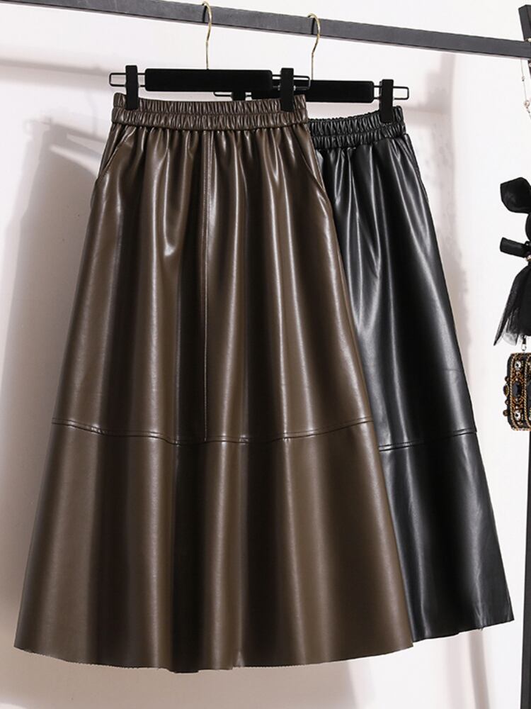UCXQ 特大ストリート dames nieuwe PU lederen rokken vrouwelijke カジュアル elastische hoge taille halfve rok 2024 lente herfst 23A7113 | city&trip